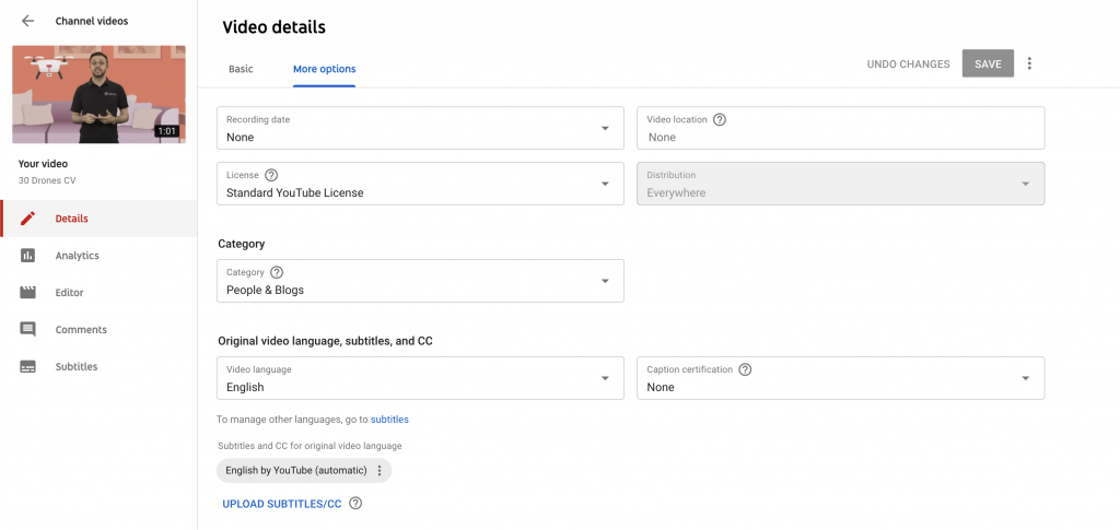 Once you’re on the More Options page, scroll down to the Subtitles section. There you will see a file labeled “English by YouTube (Automatic)” – this file is automatically generated by YouTube.