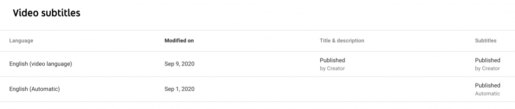 YouTube will redirect you to the Classic Studio page, where you’ll see two captioning options: the auto-generated captions and your manually fixed captions.