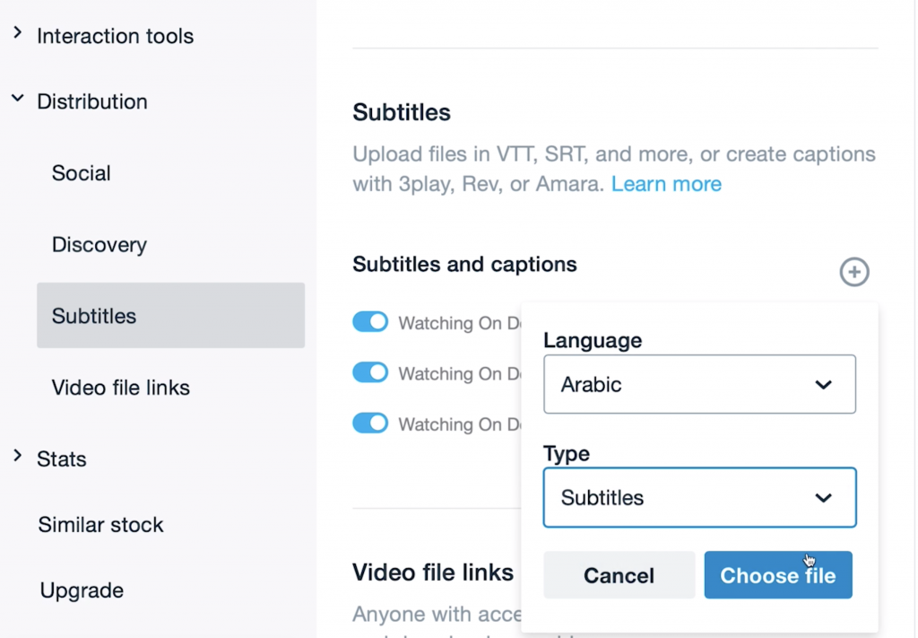The Corps primarily uses Vimeo to host videos. With this in mind, upload the .srt file to accompany the video. In order to do this, log into Vimeo. Go to your video and then hit Settings then head to the Distribution tab. After that, click on Subtitles.