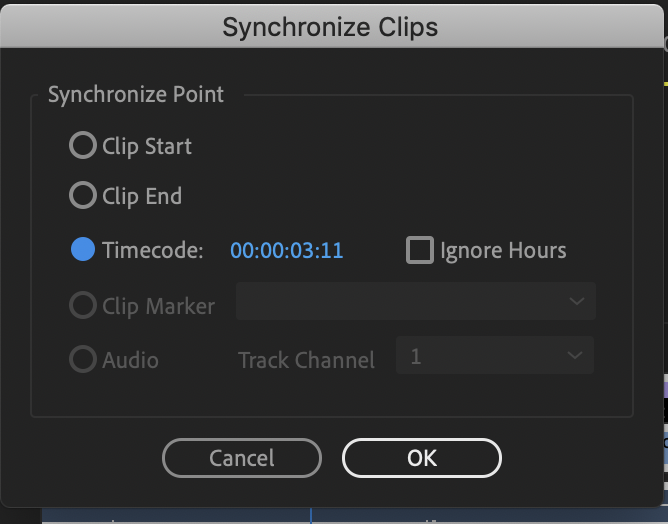 A new window will pop up which gives you the option to choose how your clips will be synchronized. Select Timecode, and then press OK. This should sync your captions to your video.