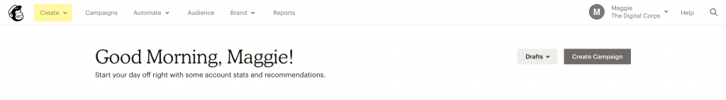 One way the Digital Corps connects with its alumni base is through email campaigns. Mailchimp, an automated email marketing service, is used to create and distribute these newsletters.