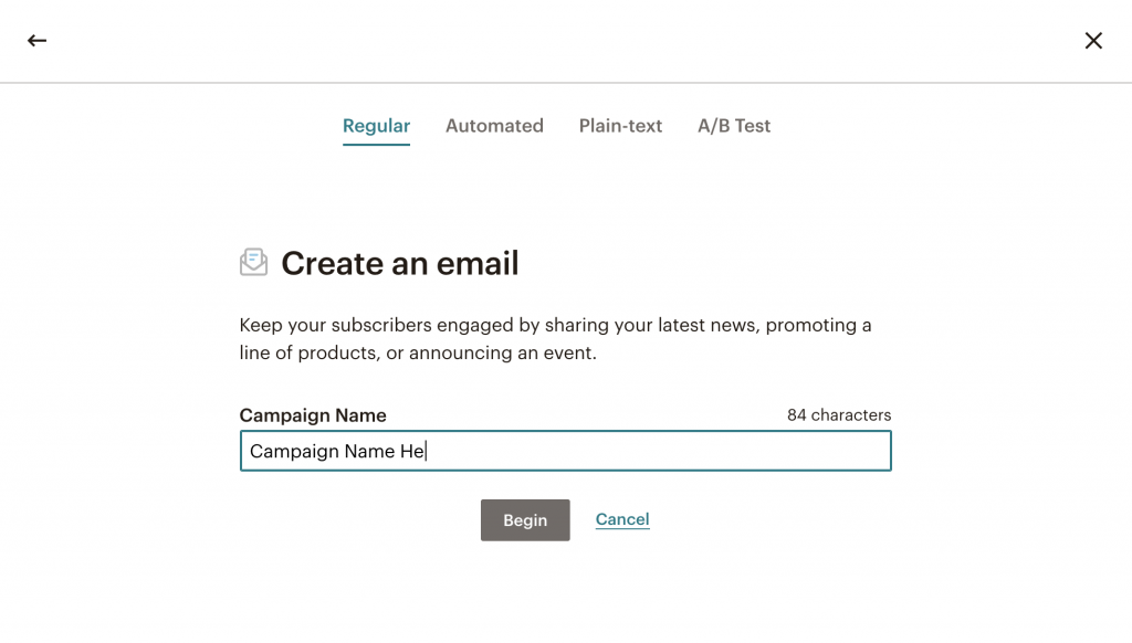 - In the popup box, name the campaign and click Begin.