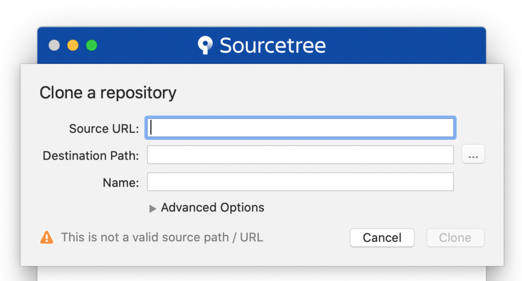 Fill out the fields listed below and click Clone. The repository is then cloned to your local machine.