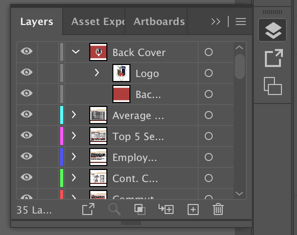Along with export formatting, file naming, and cleaning up unnecessary artboards, you can make your document file easier to export and make changes to by cleaning up and organizing the design elements within it. If you keep organization in mind as you work on your document, you will have an easier time prepping your work for review.