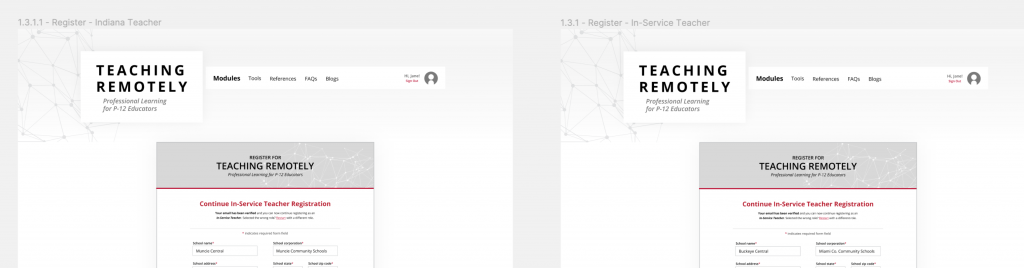 The following images show how frames (artboards) in Figma were named in a past project to help match with the UX Team’s review plans.