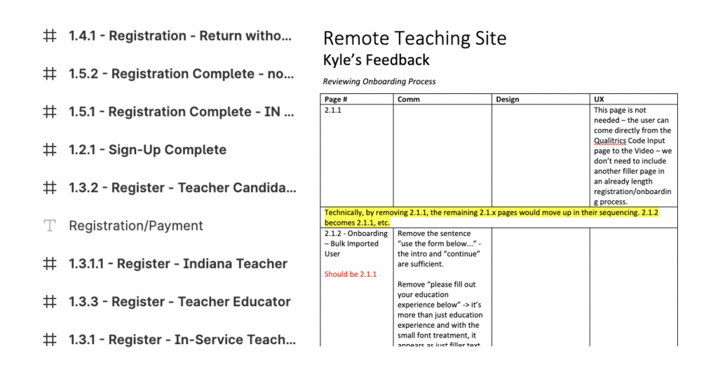 These images show the consistency of file naming conventions used on the Remote Teaching Site project. If the file you work on does not have prior naming conventions, use a specific, simple file name that describes the purpose of the file.
